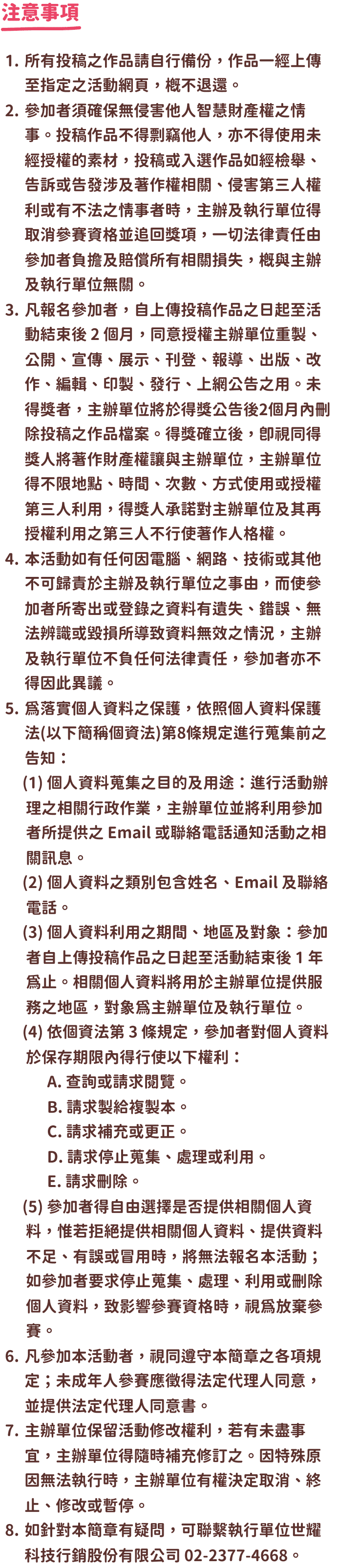 - 如針對本簡章有疑問,可聯繫執行單位世耀科技行銷股份有限公司 02-2377-4668。